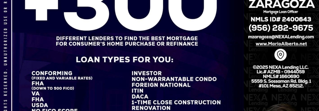 Hi, my name is Mario Zaragoza. I’m a Loan Officer with NEXA Lending LLC., offering personalized mortgage solutions, fast customized quotes, great rates and service with integrity.