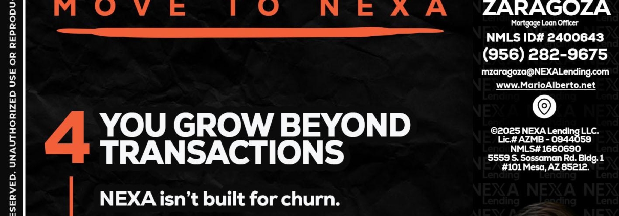 7 THINGS (4) - Mario Zaragoza -Mortgage Loan OfficerHi, my name is Mario Zaragoza. I’m a Loan Officer with NEXA Lending LLC., offering personalized mortgage solutions, fast customized quotes, great rates and service with integrity.