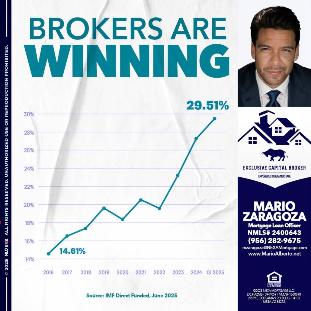 BROKERS ARE WINNING - Mario Zaragoza -Mortgage Loan OfficerHi, my name is Mario Zaragoza. I’m a Loan Officer with NEXA Mortgage LLC., offering personalized mortgage solutions, fast customized quotes, great rates and service with integrity.