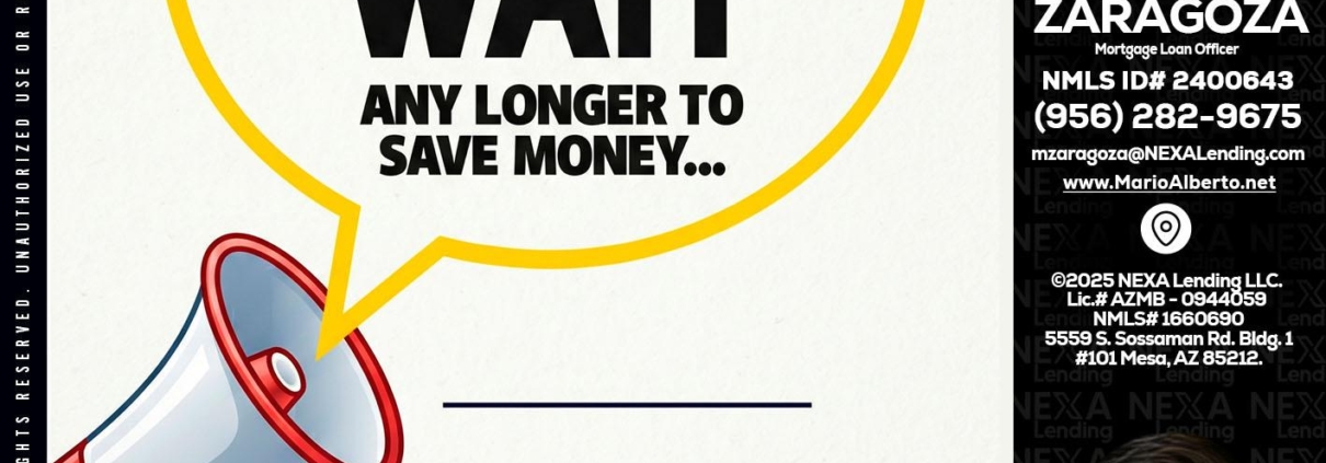 DONT WAIT - Mario Zaragoza -Mortgage Loan OfficerHi, my name is Mario Zaragoza. I’m a Loan Officer with NEXA Lending LLC., offering personalized mortgage solutions, fast customized quotes, great rates and service with integrity.