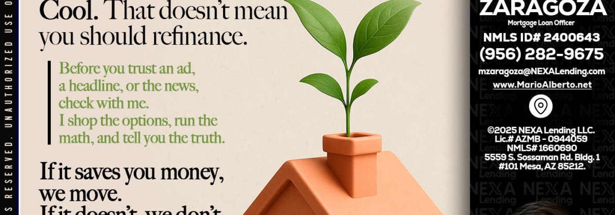 Hi, my name is Mario Zaragoza. I’m a Loan Officer with NEXA Lending LLC., offering personalized mortgage solutions, fast customized quotes, great rates and service with integrity.
