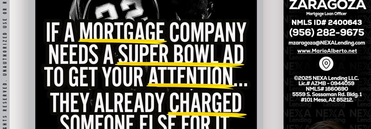 if a mortgage ad - Mario Zaragoza -Mortgage Loan OfficerHi, my name is Mario Zaragoza. I’m a Loan Officer with NEXA Lending LLC., offering personalized mortgage solutions, fast customized quotes, great rates and service with integrity.