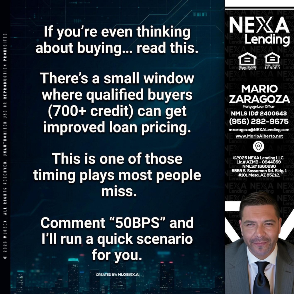 Hi, my name is Mario Zaragoza. I’m a Loan Officer with NEXA Lending LLC., offering personalized mortgage solutions, fast customized quotes, great rates and service with integrity.