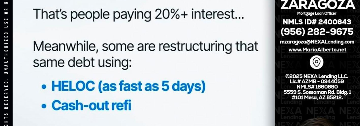 Hi, my name is Mario Zaragoza. I’m a Loan Officer with NEXA Lending LLC., offering personalized mortgage solutions, fast customized quotes, great rates and service with integrity.