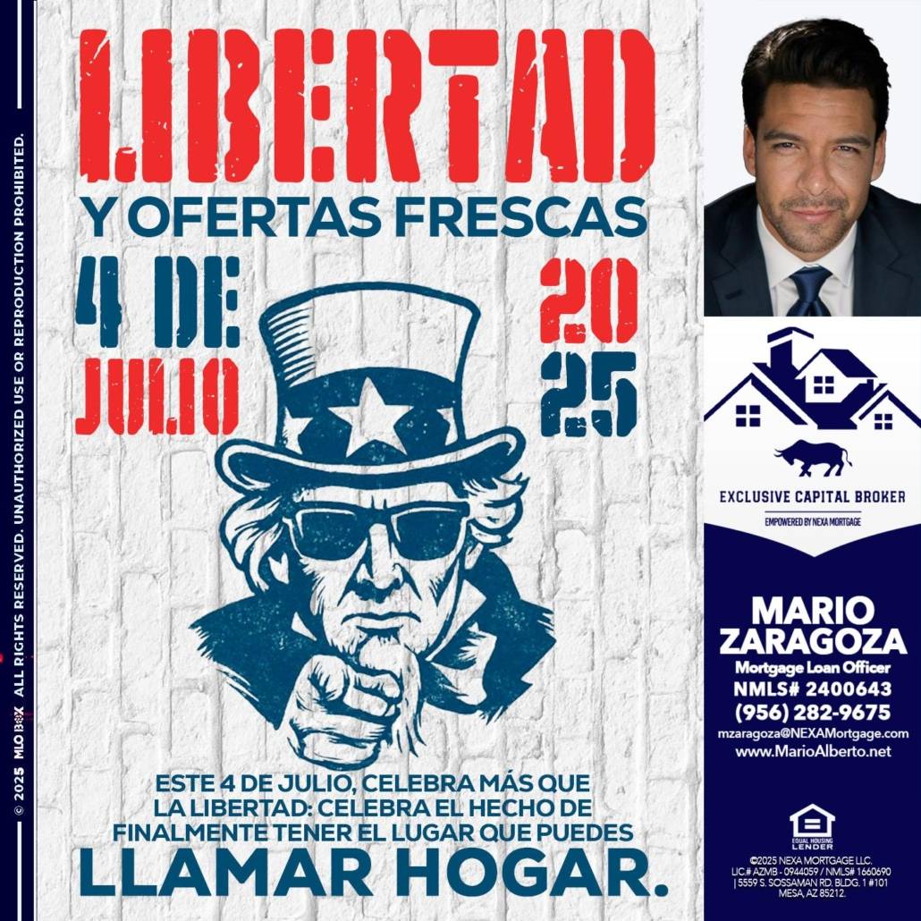 LIBERTAD - Mario Zaragoza -Mortgage Loan OfficerHi, my name is Mario Zaragoza. I’m a Loan Officer with NEXA Mortgage LLC., offering personalized mortgage solutions, fast customized quotes, great rates and service with integrity.