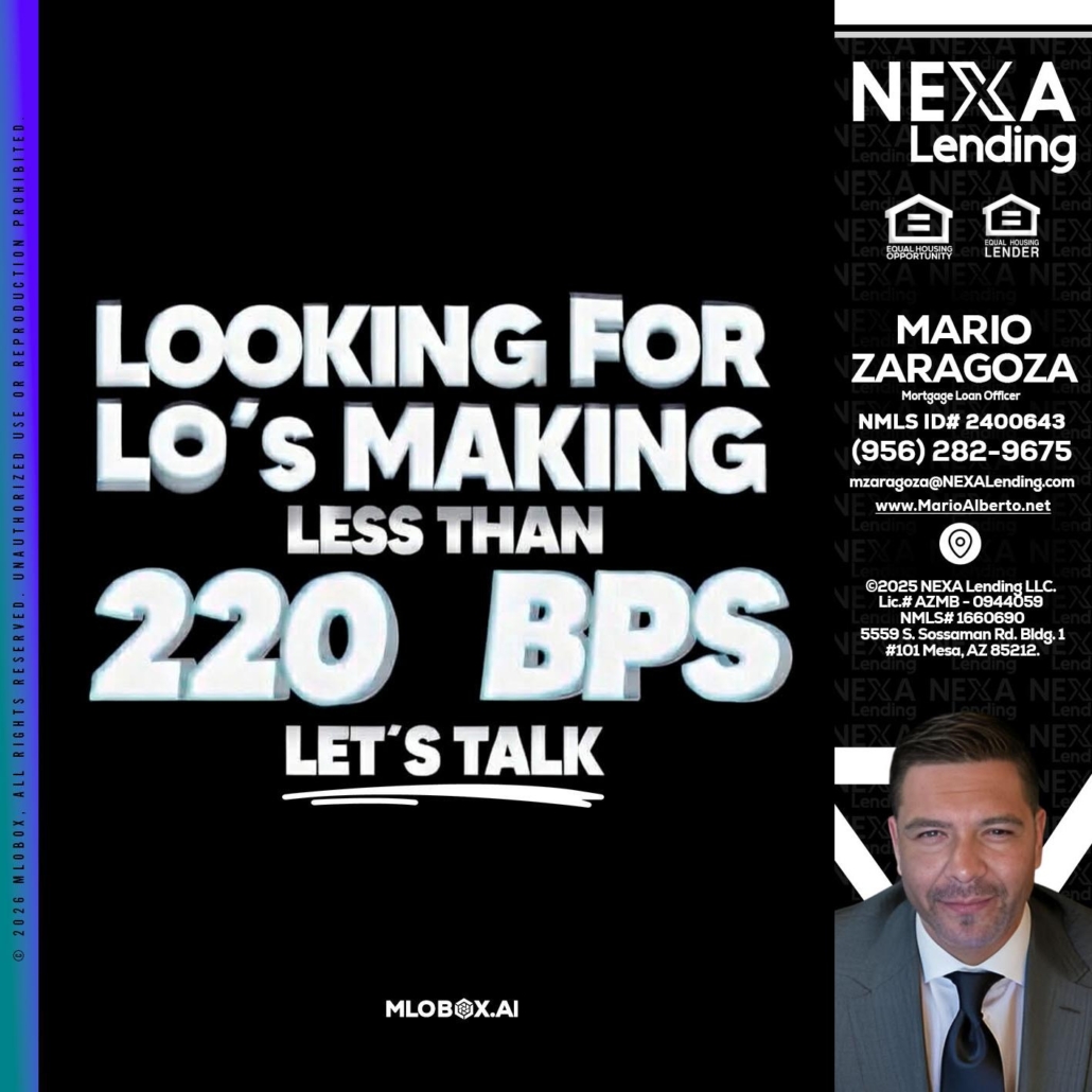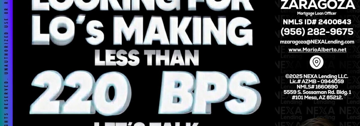 Hi, my name is Mario Zaragoza. I’m a Loan Officer with NEXA Lending LLC., offering personalized mortgage solutions, fast customized quotes, great rates and service with integrity.
