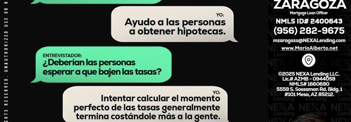 Hi, my name is Mario Zaragoza. I’m a Loan Officer with NEXA Lending LLC., offering personalized mortgage solutions, fast customized quotes, great rates and service with integrity.