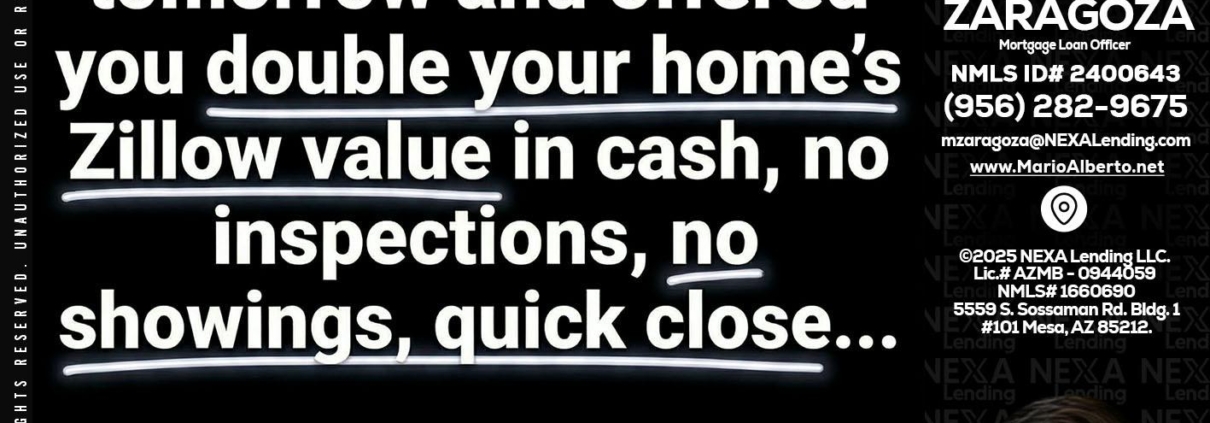 QUICK QUESTION - Mario Zaragoza -Mortgage Loan OfficerHi, my name is Mario Zaragoza. I’m a Loan Officer with NEXA Lending LLC., offering personalized mortgage solutions, fast customized quotes, great rates and service with integrity.