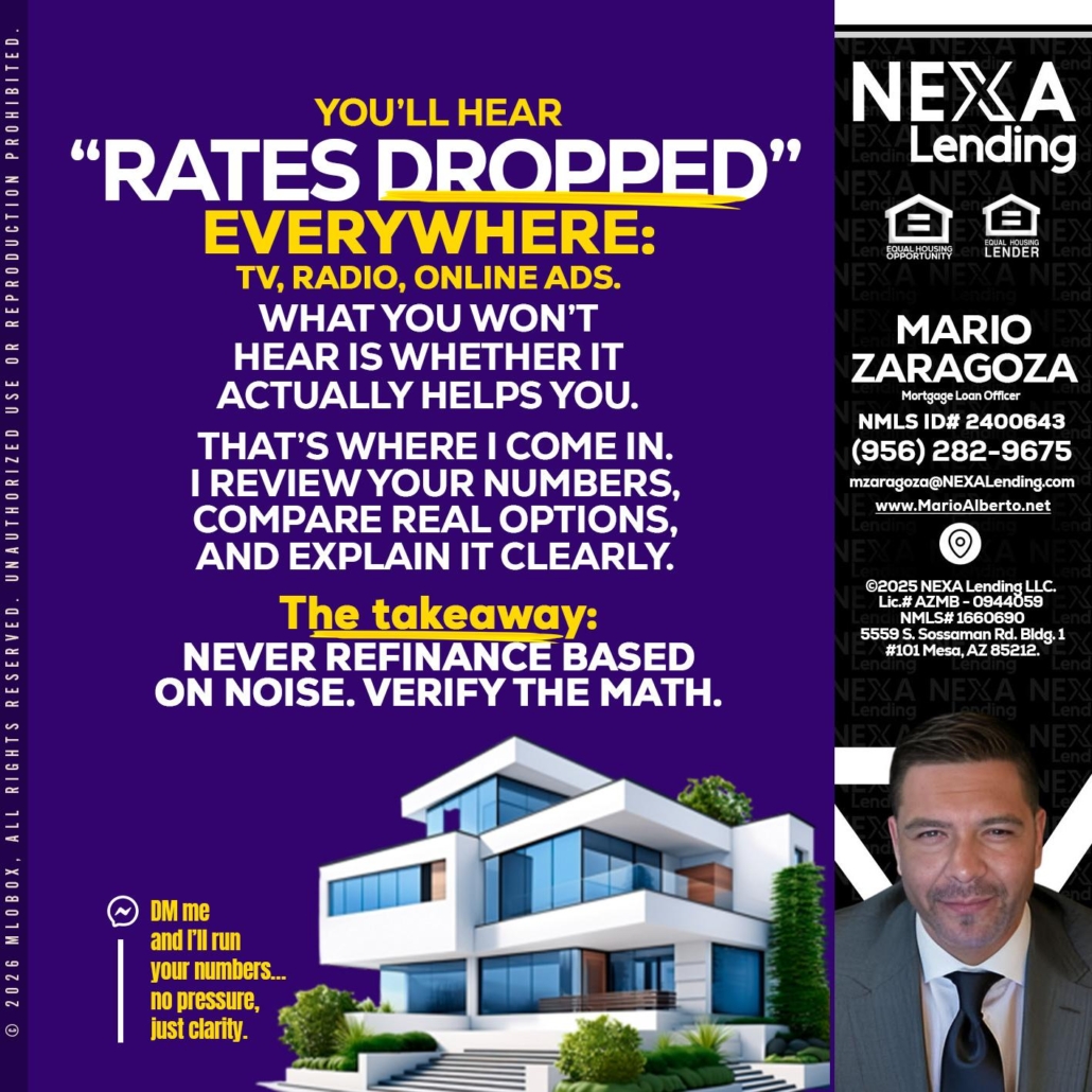 Hi, my name is Mario Zaragoza. I’m a Loan Officer with NEXA Lending LLC., offering personalized mortgage solutions, fast customized quotes, great rates and service with integrity.