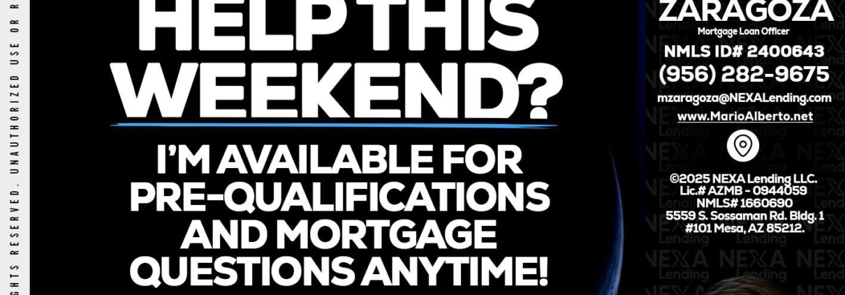 Hi, my name is Mario Zaragoza. I’m a Loan Officer with NEXA Lending LLC., offering personalized mortgage solutions, fast customized quotes, great rates and service with integrity.