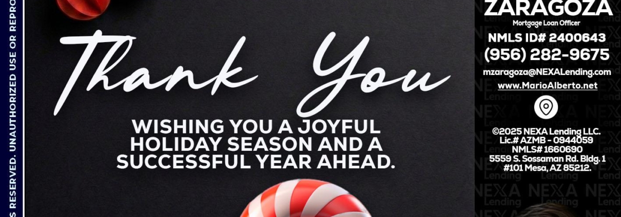 THANK YOU - Mario Zaragoza -Mortgage Loan OfficerHi, my name is Mario Zaragoza. I’m a Loan Officer with NEXA Lending LLC., offering personalized mortgage solutions, fast customized quotes, great rates and service with integrity.