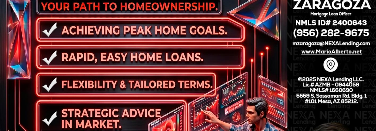 Hi, my name is Mario Zaragoza. I’m a Loan Officer with NEXA Lending LLC., offering personalized mortgage solutions, fast customized quotes, great rates and service with integrity.