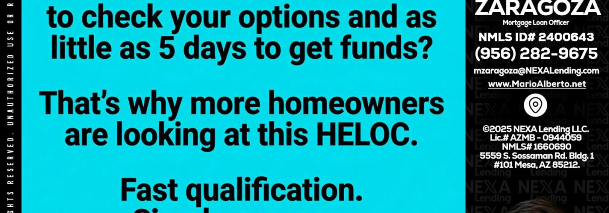 Hi, my name is Mario Zaragoza. I’m a Loan Officer with NEXA Lending LLC., offering personalized mortgage solutions, fast customized quotes, great rates and service with integrity.