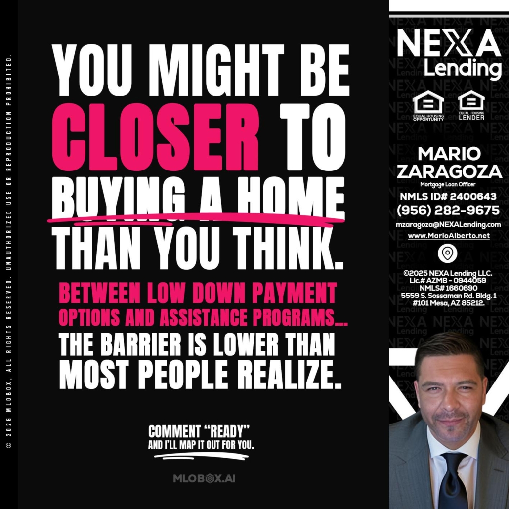 Hi, my name is Mario Zaragoza. I’m a Loan Officer with NEXA Lending LLC., offering personalized mortgage solutions, fast customized quotes, great rates and service with integrity.